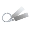 云母加熱器是以云母板為絕緣材料的耐高溫加熱器。其上端面與上云母片的下端面相粘合,下端面與下云母片相粘合。發(fā)熱體經(jīng)由電連接線與外部電源相連接,分布在發(fā)熱體兩側(cè)的上云母片與下云母片高溫膠熱壓一體成型,整體呈平板式。本公司對蓋板進(jìn)行了專利設(shè)計,該設(shè)計并不妨礙電連接線的固定,且使得使用者不會直接接觸上云母片,大大的提高了使用者使用的舒適性。